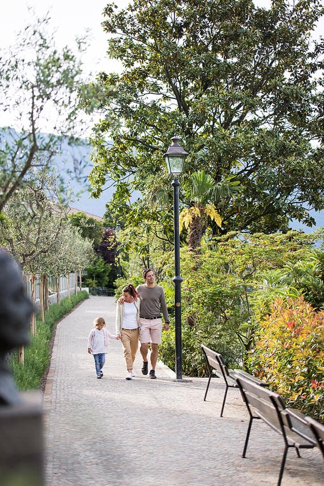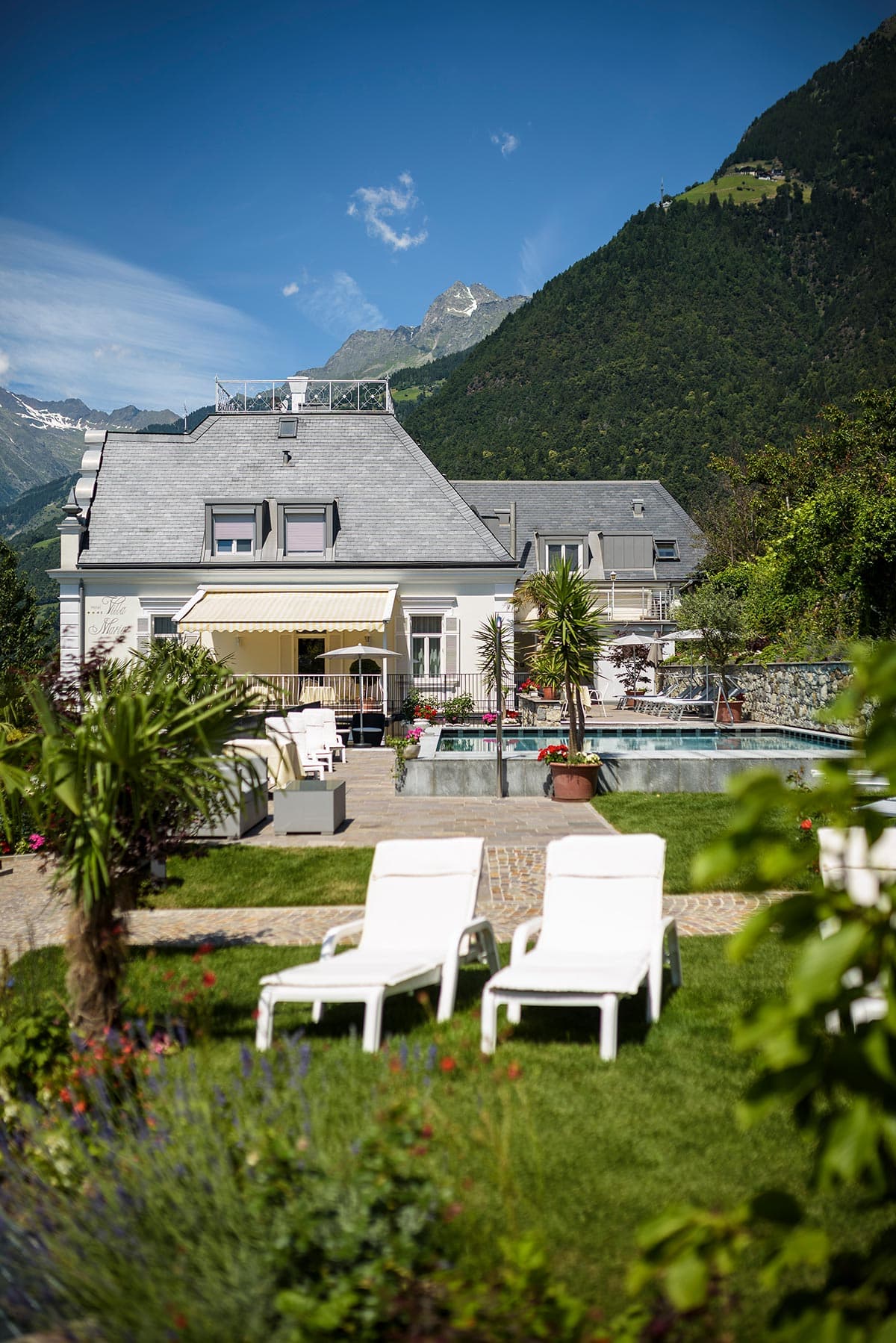 Auf einem ruhigen, sonnigen Panoramaplateau zwischen Weinbergen und Wäldern, umgeben von der traumhaften Bergkulisse der Texelgruppe. Der ideale Ausgangspunkt für Wanderungen und nur wenige Gehminuten von Schloss Tirol entfernt, mit Meran zu Ihren Füßen.