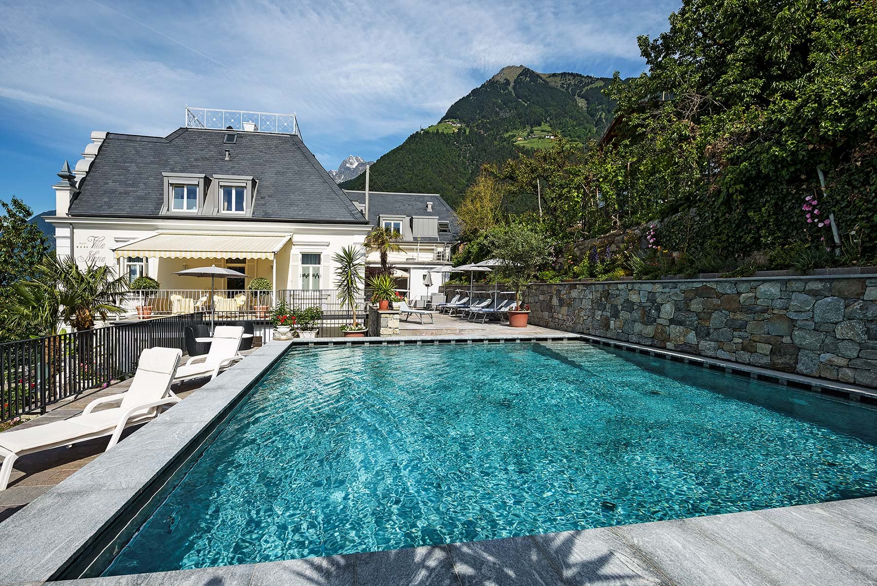 "Hotel in erstklassiger Lage. Herrlicher Ausblick auf Meran und das Vinschgau. Frühstück ausreichend. Unzählige Gaststätten zum Abendessen in unmittelbarer Umgebung. Das Hotel ist wunderbar ausgestattet mit Pool, Whirlpool und Sauna."